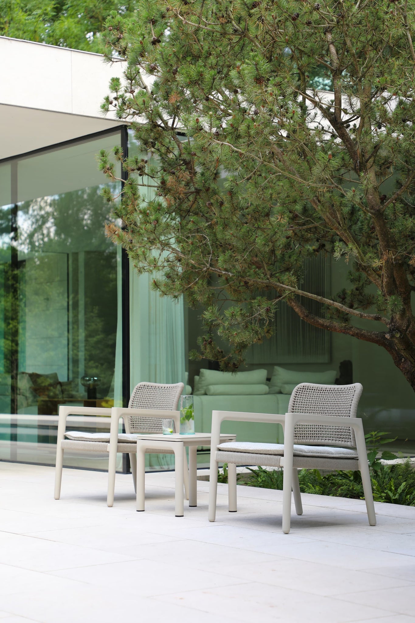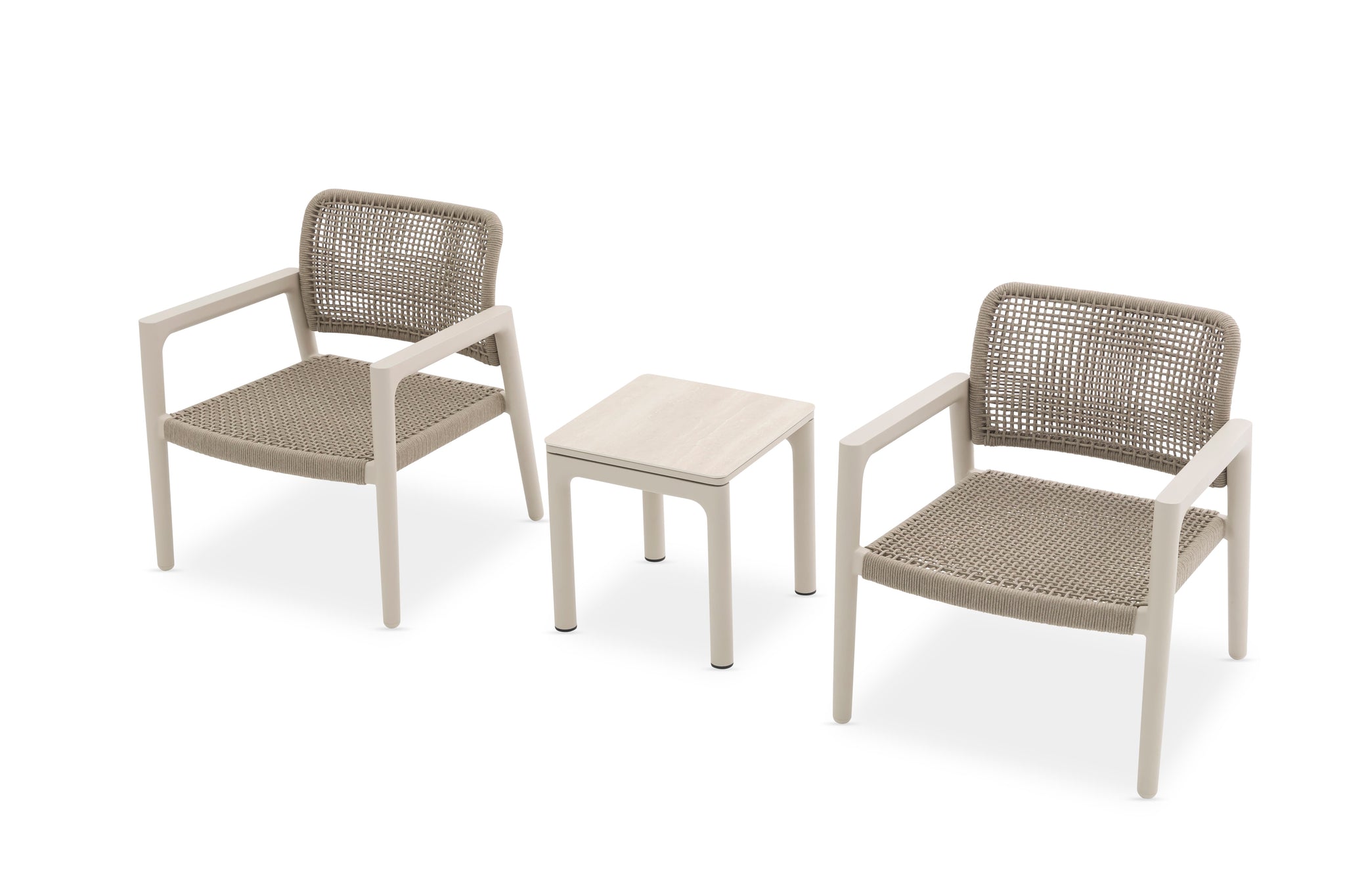 Compact yet considered, it features a warm Mocha aluminium frame topped with a refined ceramic surface, offering durability without visual weight. Made to withstand outdoor living, the ceramic top is resistant to heat and wear, while the clean-lined silhouette keeps the look calm and cohesive.